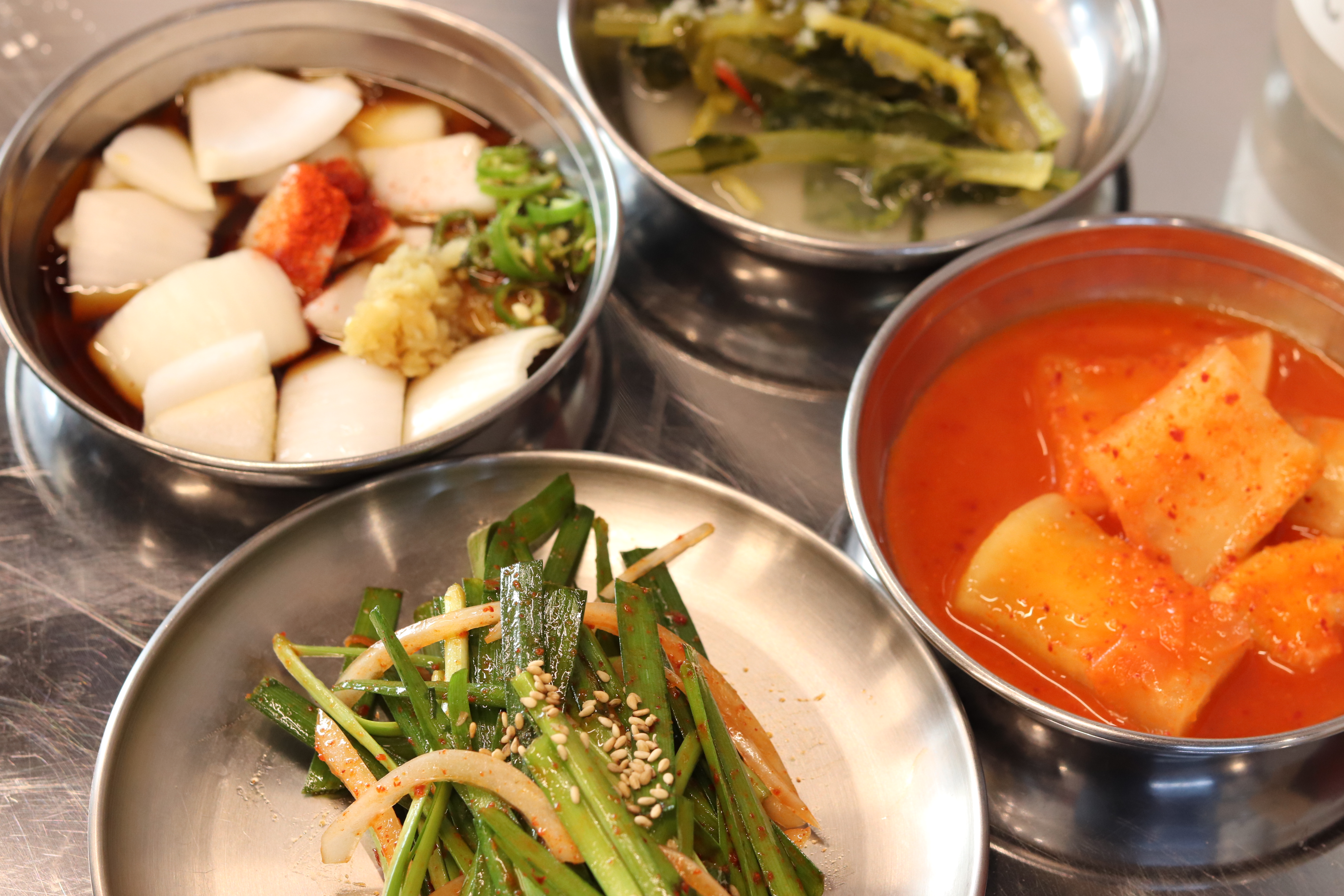 열무김치, 섞박지, 부추무침과 간장소스에 퐁 빠진 양파 나오는데요. 기본 반찬은 계절에 따라 달라질 수 있음을 먼저 말씀드리고요.