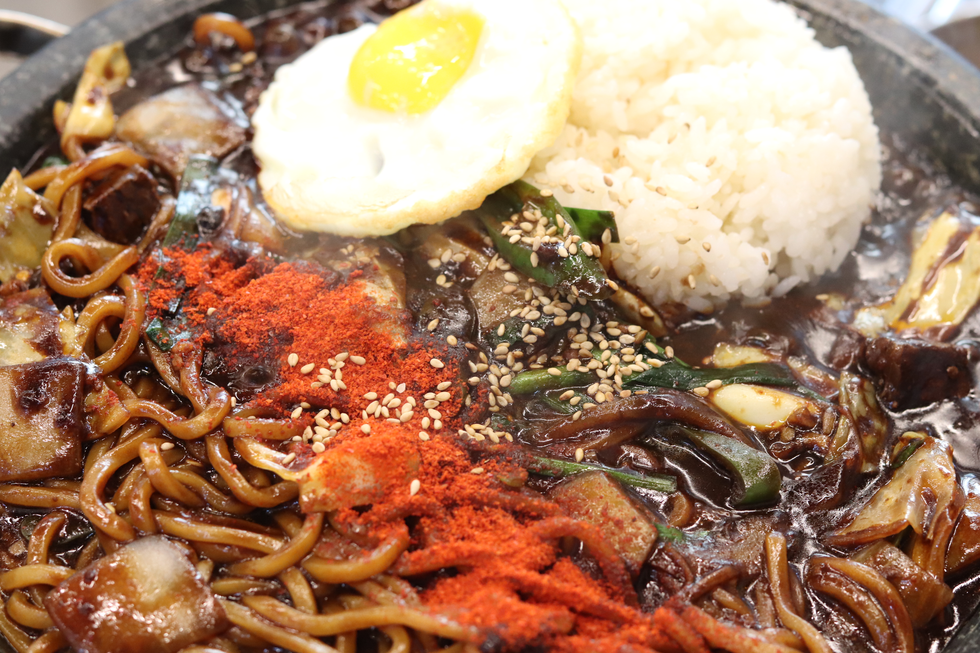 서초동 맛집 곱창 모둠한판을 어느 정도 비우고 나면 직원분이 판을 정리해주시고, 지글지글 소리나는 돌판해물짜장을 휴대용 가스레인지에 올려줍니다.