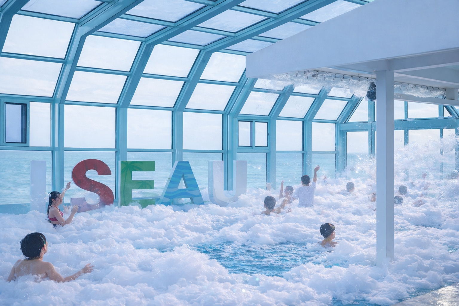 파인타워 인피니티풀은 돔 형태의 천장을 열고 닫을 수 있는 구조로 파인타워 6층에 위치하고 있습니다.